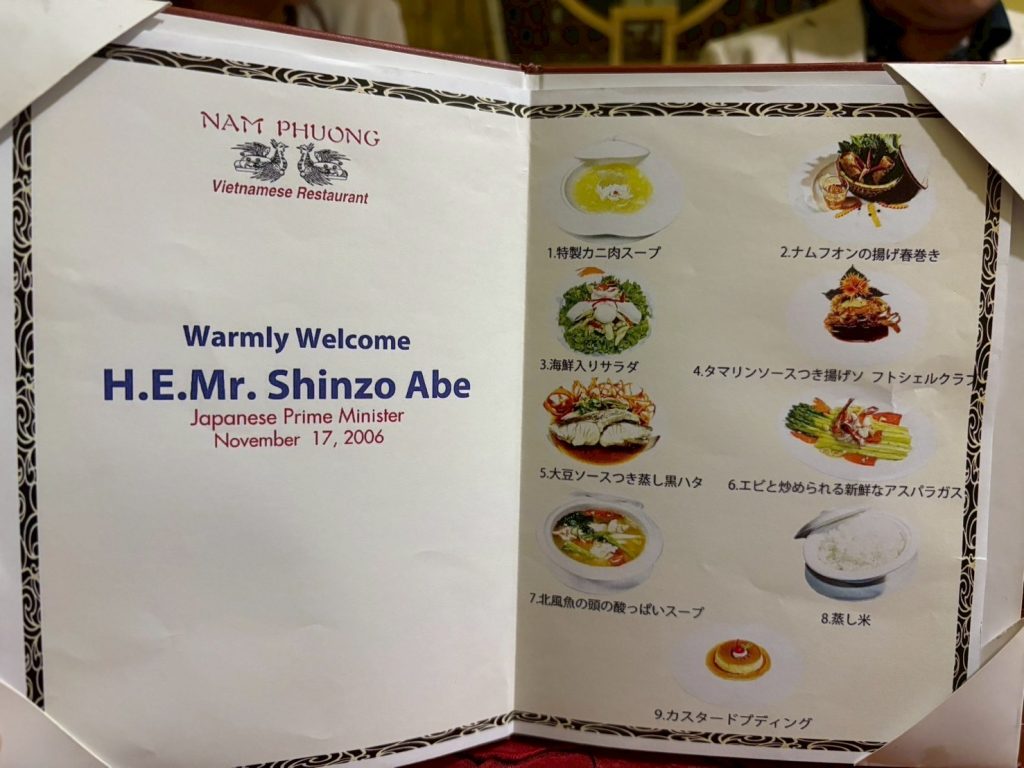 会場は安倍首相小泉首相等が訪れたメニューも作られている老舗ベトナム料理店で開催。